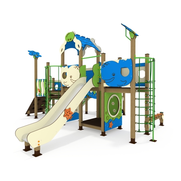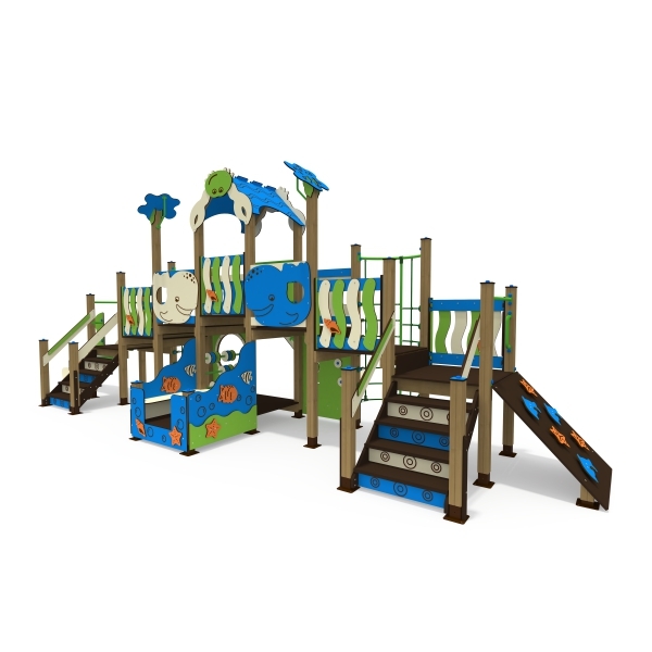 Морские игровые комплексы, выполненные в виде кораблей некогда не останется незаметным – это оригинальная тематическая основа игровой площадки. Такой комплекс привлекает внимание и всегда пользуется спросом у детей. Продуманный конструктив и дизайн делают наши комплексы такими востребованными у детей: палуба и корма, игровой штурвал, иллюминаторы, якорь, тактильные панели, пружинный бум, детские горки, веревочные сети и лестницы.